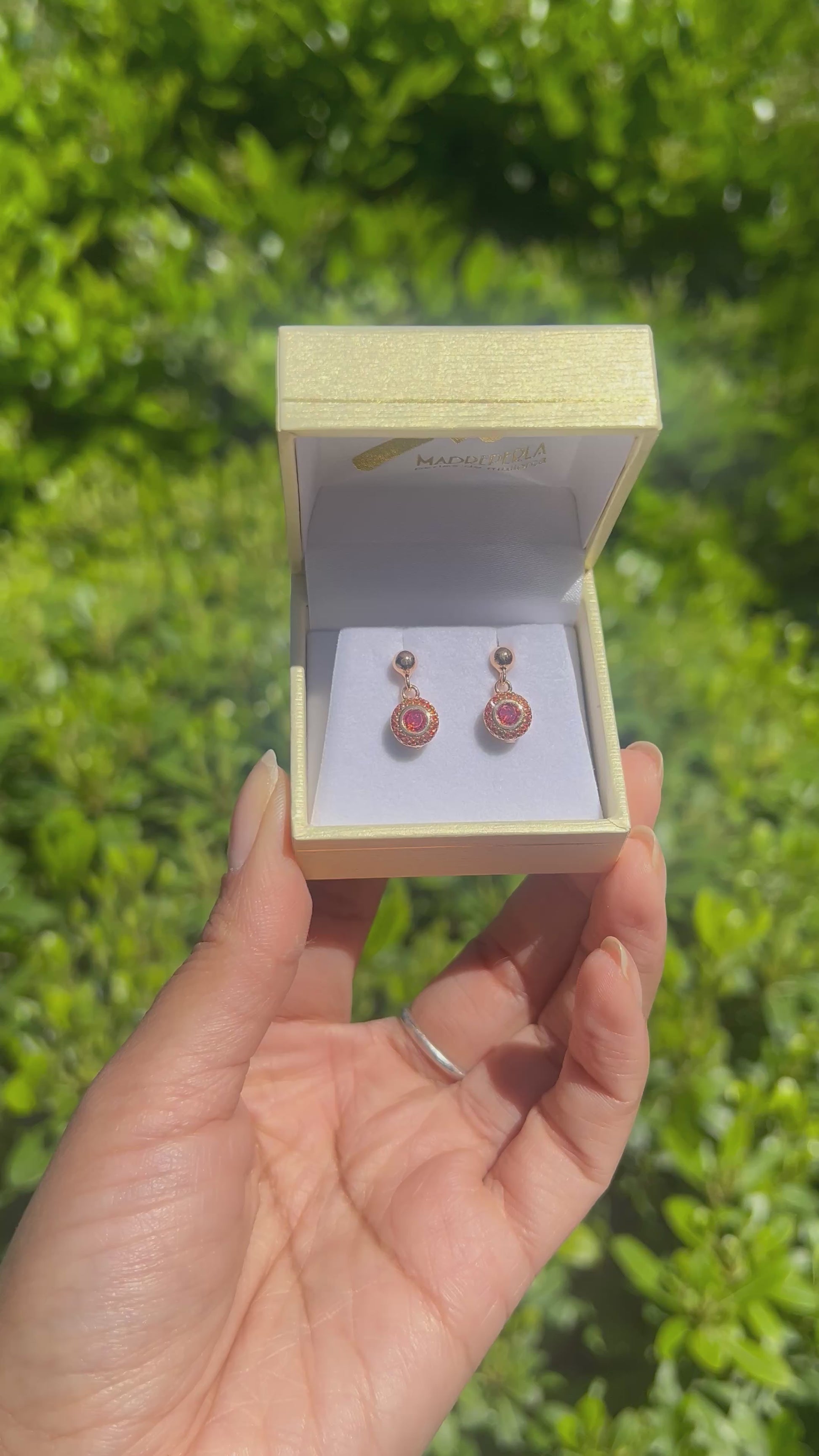 Un diseño delicado y femenino que realza tu elegancia natural. Estos aros incorporan micro circones finos de acabado rojo, creando un brillo sutil y sofisticado. Son el complemento ideal para ocasiones especiales o para darle un toque distinguido a tu día a día.