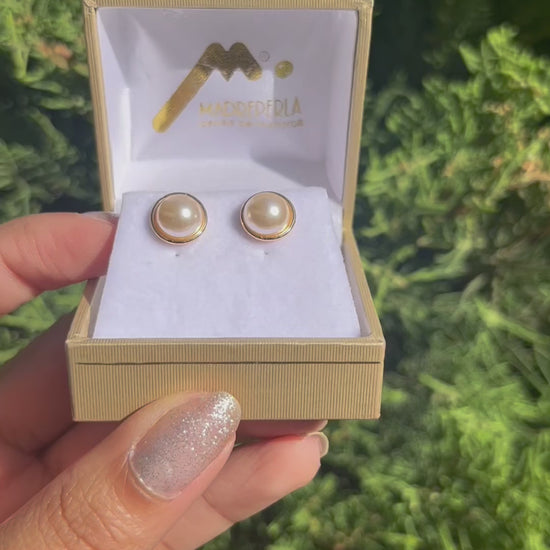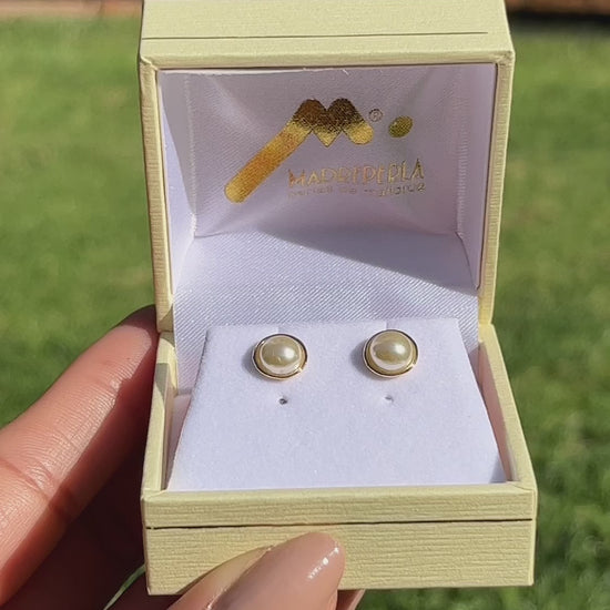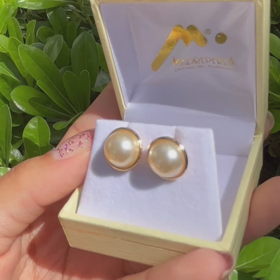 Aros Perlas de Mallorca enchapado en Oro de 18K Media Perlas
