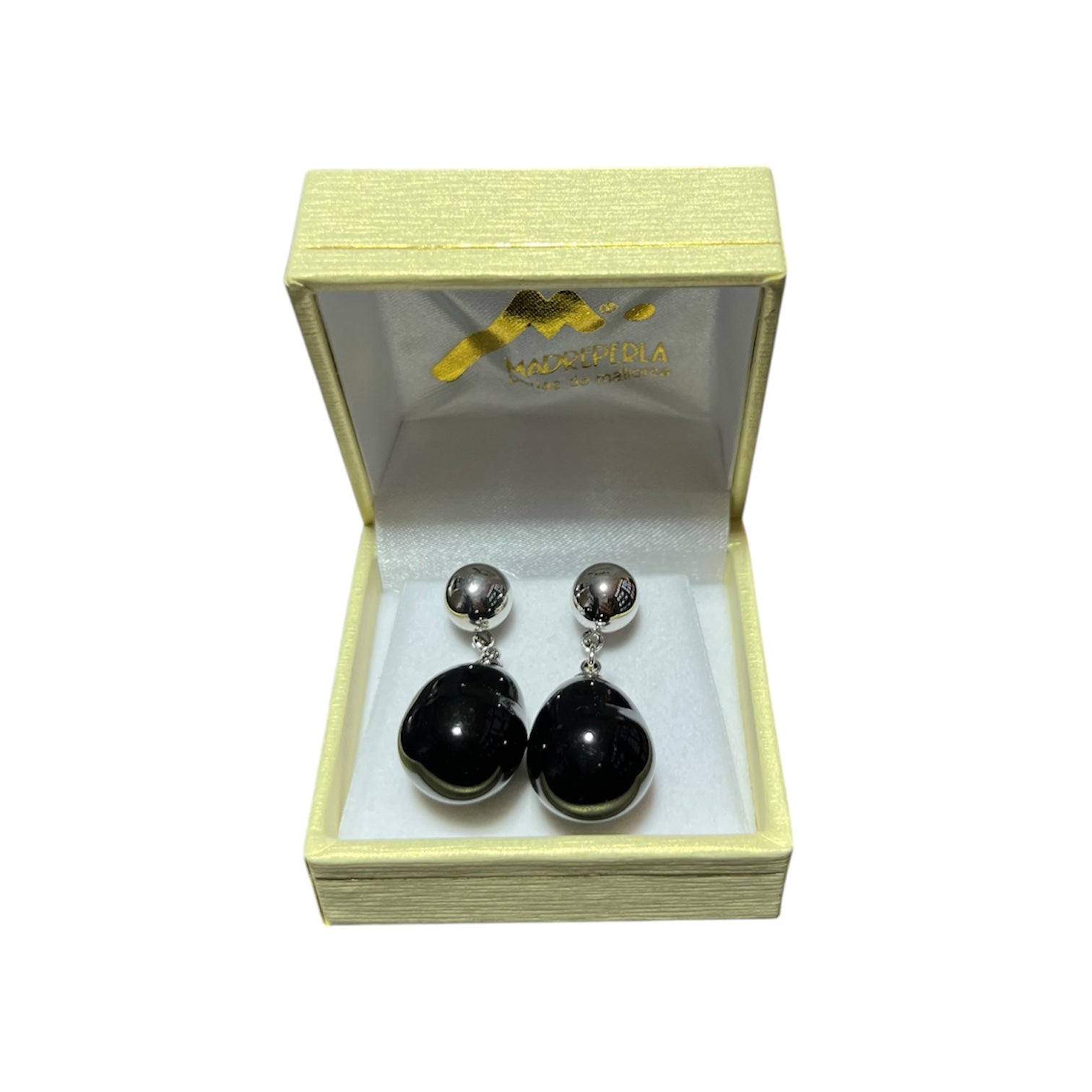 Aros Perlas de Mallorca bañados en Rodio Barque Onix