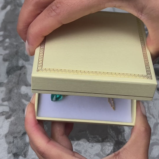 El dije, creado con un deslumbrante cristal Swarovski en un vibrante color verde esmeralda, captura la luz de manera excepcional, convirtiéndose en el centro de atención. Su diseño inspirado en Mallorca es ideal para complementar tanto atuendos casuales como más formales, permitiendo a cada mujer expresar su personalidad única.