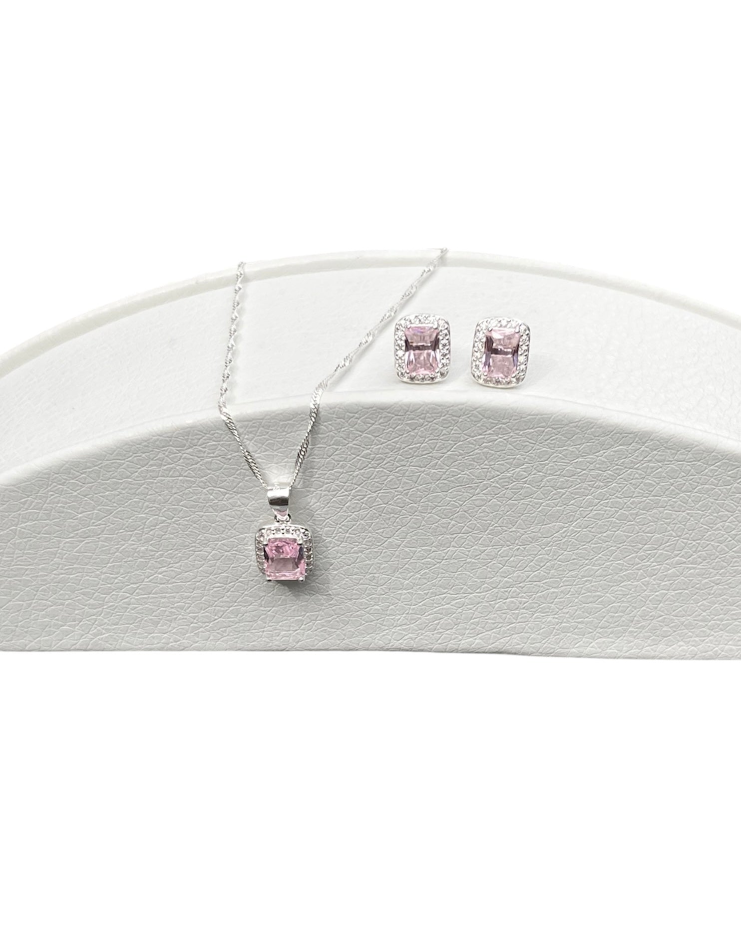 Collar Plata 925 Cuadrado Circón Rosa Francia