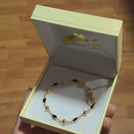 Cada pulsera está enchapado en Oro de 18K y viene presentada en su empaque personalizado de Mare Rosato.