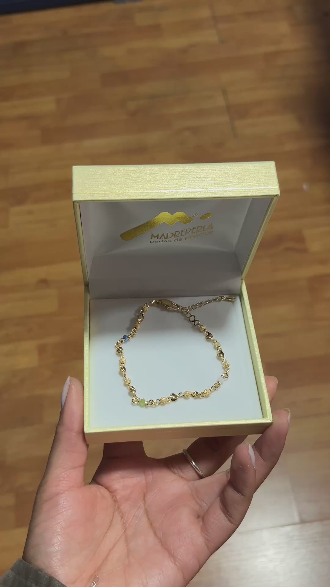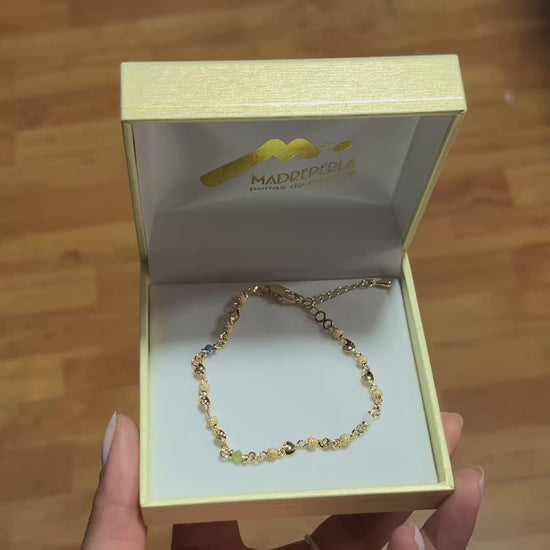 Cada pulsera está enchapado en Oro de 18K y viene presentada en su empaque personalizado de Mare Rosato.