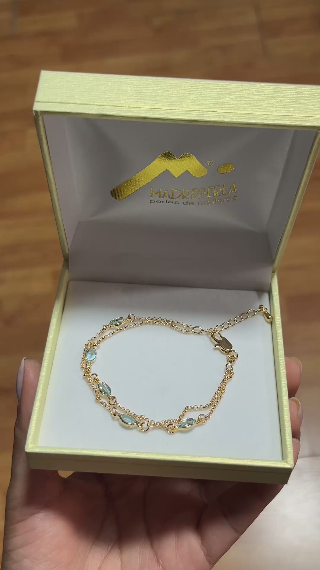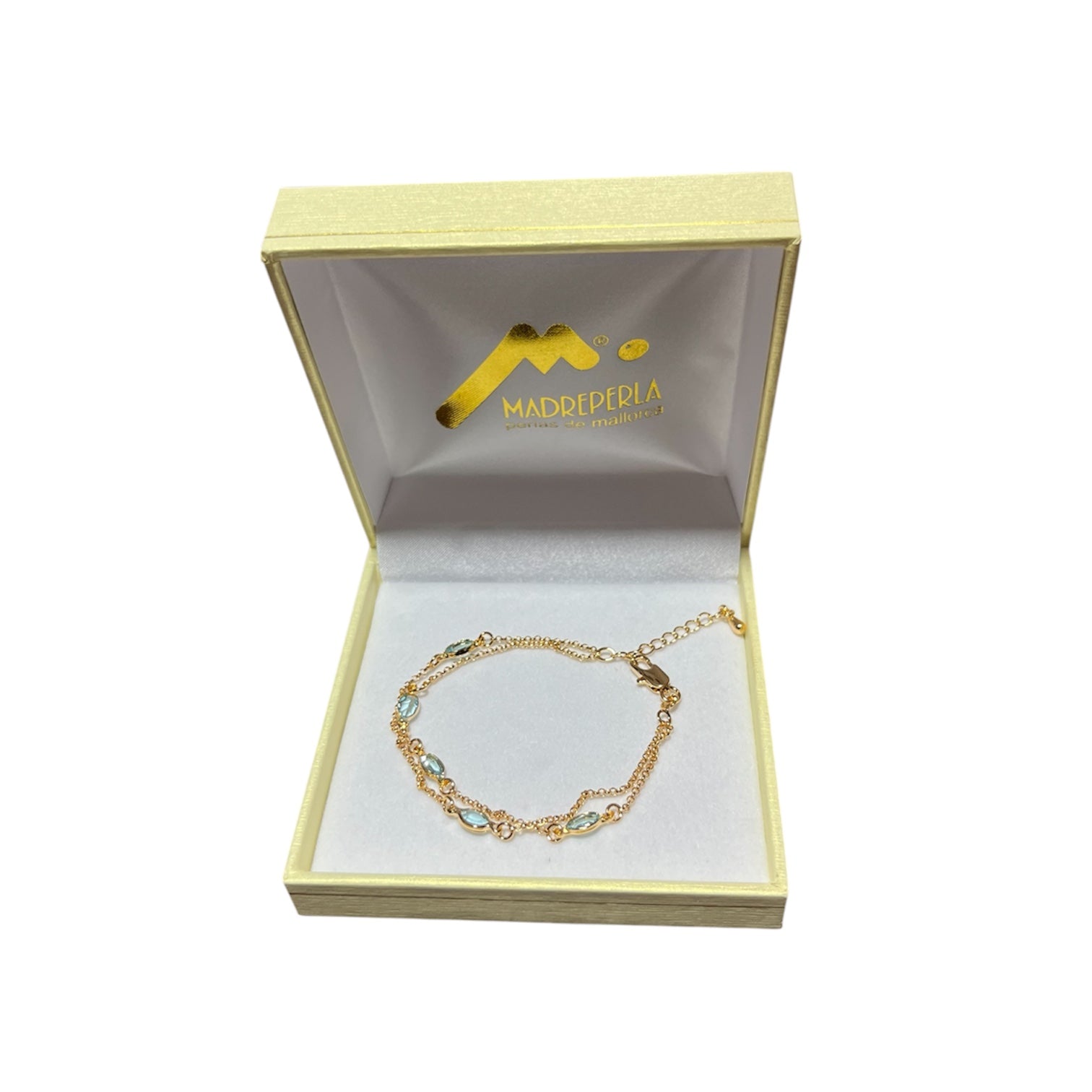 Cada pulsera está enchapado en Oro de 18K y viene presentada en su empaque personalizado de Mare Rosato.